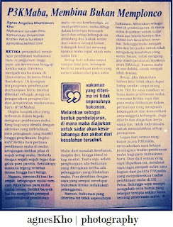Ketika pertamakali mendengar pembinaan mahasiswa baru di perguruan tinggi, jujur ada kecemasan hinggap ketika saya diterima menjadi mahasiswa di Universitas Kristen Petra Surabaya. Di kampus ini program pembinaan mahasiswa baru (maba) dikenal sebagai program pengarahan pengenalan dan kreativitas mahasiswa baru (P3KMaba).